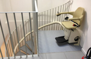 Les monte-escaliers ou « ascensièges » sont des dispositifs élévateurs de personne installés sur des escaliers intérieurs ou extérieurs d’habitation. Ils se déplacent sur un ou deux rails-guides métalliques, fabriqués sur mesure aux dimensions de l’escalier, et fixés sur les marches. Le moteur est généralement alimenté par des batteries qui se rechargent automatiquement en passant devant différents points d’arrêts. Le siège-galette est muni d’un repose-pied, de deux accoudoirs et d’une ceinture de sécurité.
